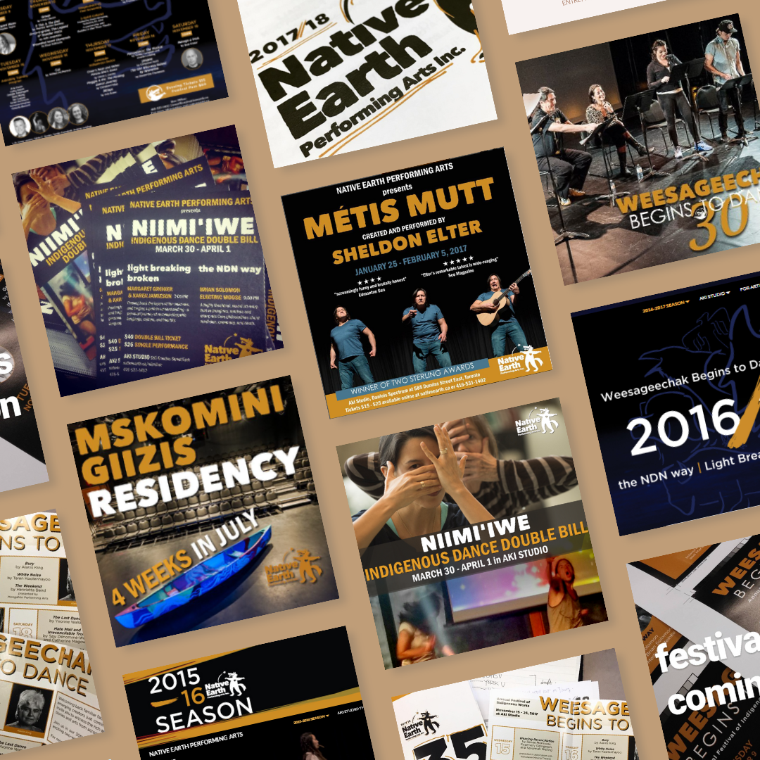 Native Earth Performing Arts website design and posters.